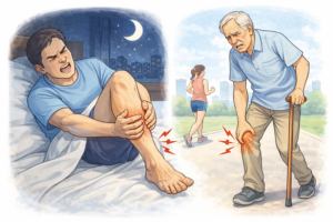 很多人都有過抽筋的經驗,尤其是半夜睡覺時,小腿突然一陣劇痛,整條腿僵住動不了,痛到醒過來。也有人是在走路、運動或蹲久站起來時突然抽筋。常見的情況包括:小腿肌肉突然緊縮、腳趾往下彎、腿部僵硬疼痛,有時要過一會兒才慢慢放鬆。