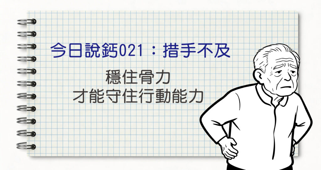 今日說鈣021:措手不及 今日鈣說 / Bstion 《老人缺鈣容易跌倒》 很多人以為老了不舒服是正常,其實很多都跟鈣慢慢流失有關。除了骨頭變脆,肌肉也會流失、力量 今日說鈣021:措手不及 閱讀全文 »