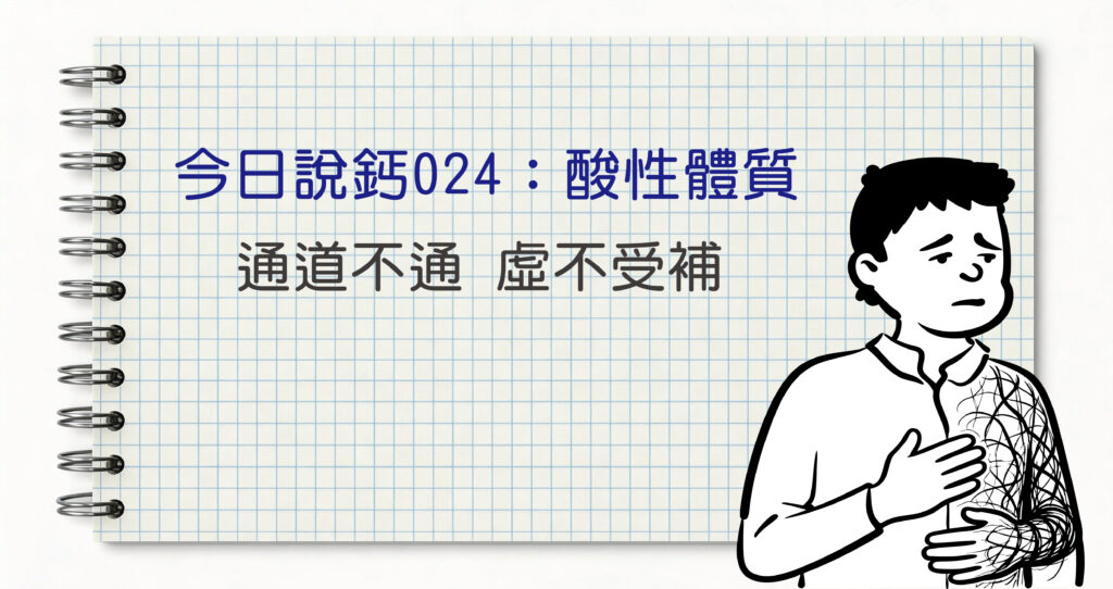 今日說鈣024:酸性體質 今日鈣說 / Bstion 《虛不受補之處理》 很多人身體會「卡住」,其實跟體內累積太多酸性代謝物有關。這些東西就像水管裡的水垢、油垢,久 今日說鈣024:酸性體質 閱讀全文 »