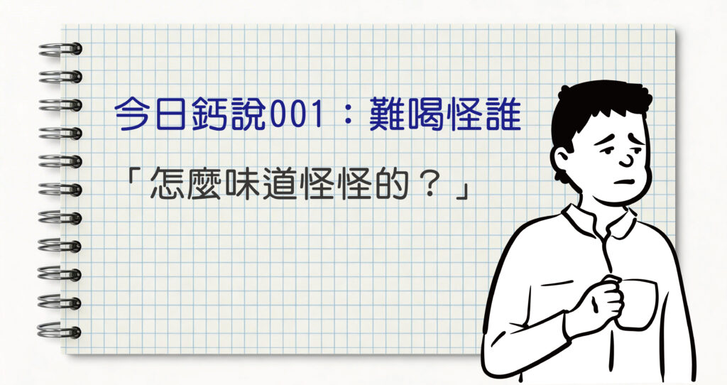今日鈣說001:難喝怪誰 今日鈣說 / Bstion 有些人第一次喝水解鈣,會說:「怎麼味道怪怪的?」其實很多時候,不一定是水的問題,可能跟自己的身體狀況有關。一般 今日鈣說001:難喝怪誰 閱讀全文 »