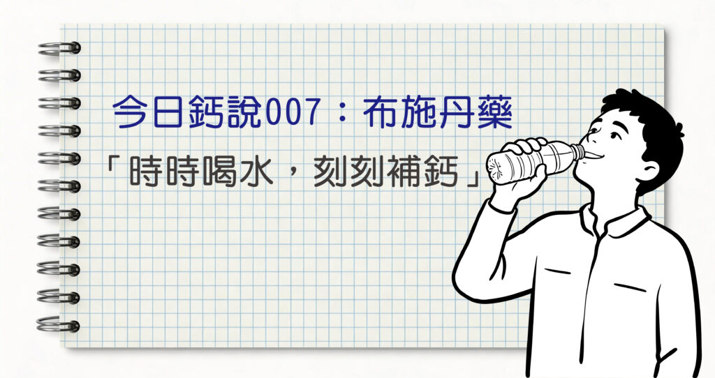 今日說鈣007:布施丹藥 今日鈣說 / Bstion 《簡單、密集、速效》 我們常說「時時喝水,刻刻補鈣」。這就是簡單,因為喝水是每天都在做的事,只要你把鈣粉加到水 […] 今日說鈣007:布施丹藥 閱讀全文 »